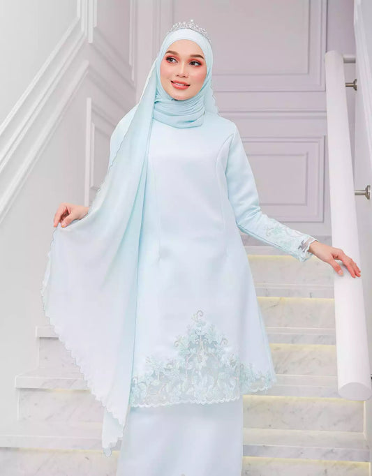 ORGANDY EMBROIDERY VEIL CODE A21 (AQUA BLUE)