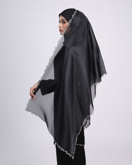 VEIL EMBROIDERY CHIFFON A19 (BLACK)