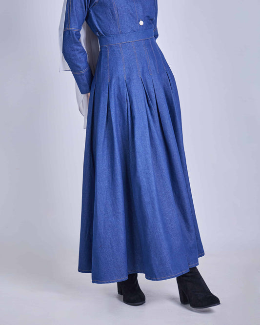 ELRA DENIM PLEATED SKIRT (DARK BLUE)