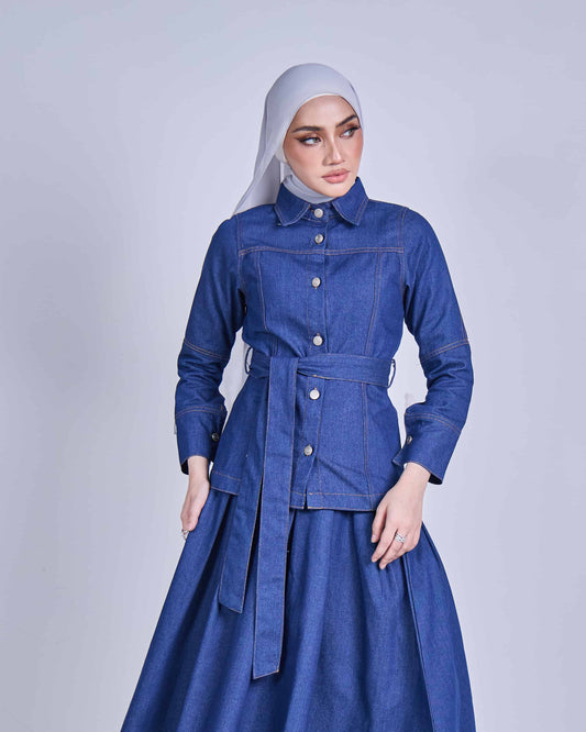 FEYRA DENIM BELTED JACKET (DARK BLUE)