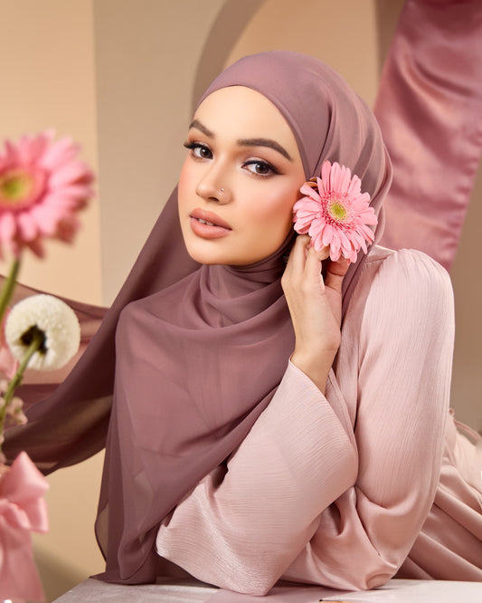 HANA CHIFFON SILK SHAWL (DARK MAUVE)