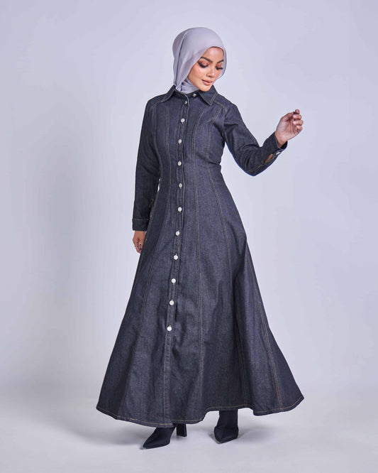 NOVA DENIM BUTTON DRESS (DARK BLUE)