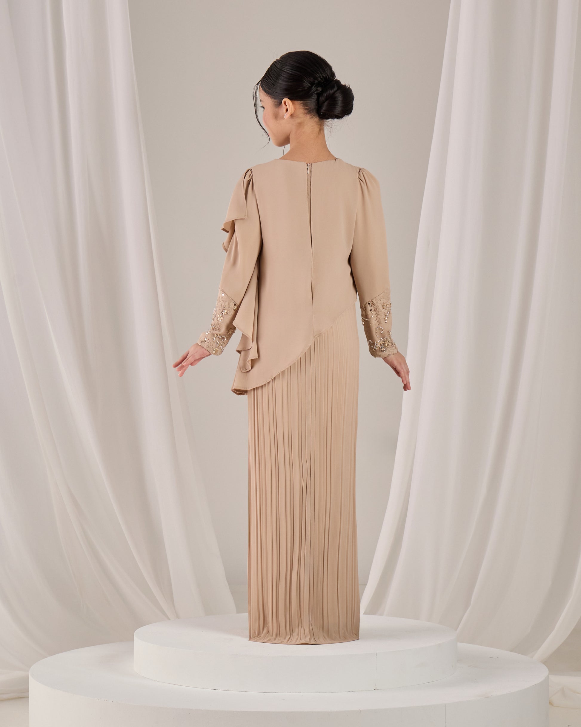 Embelishment : French lace beaded at shoulder and wrist sleeve