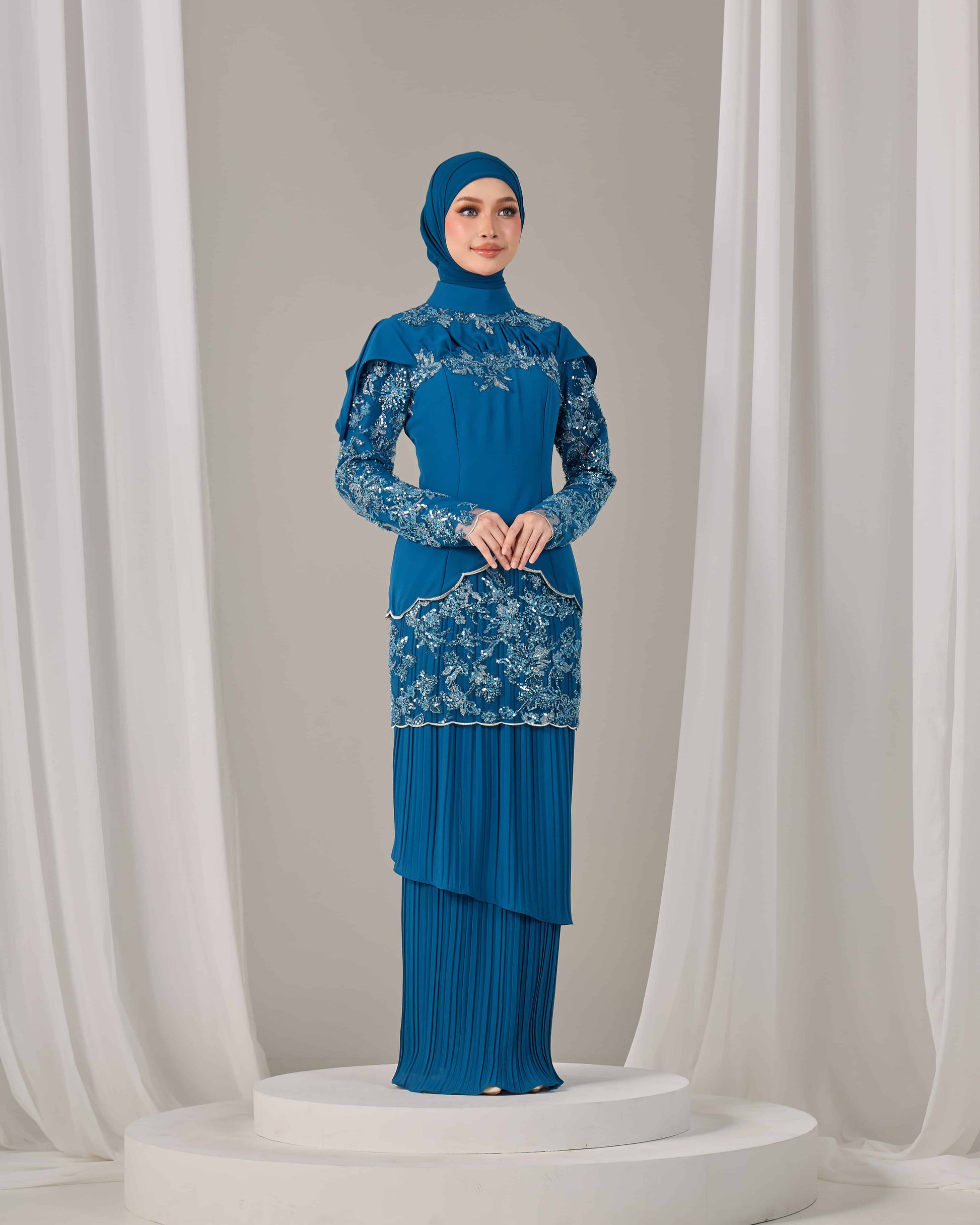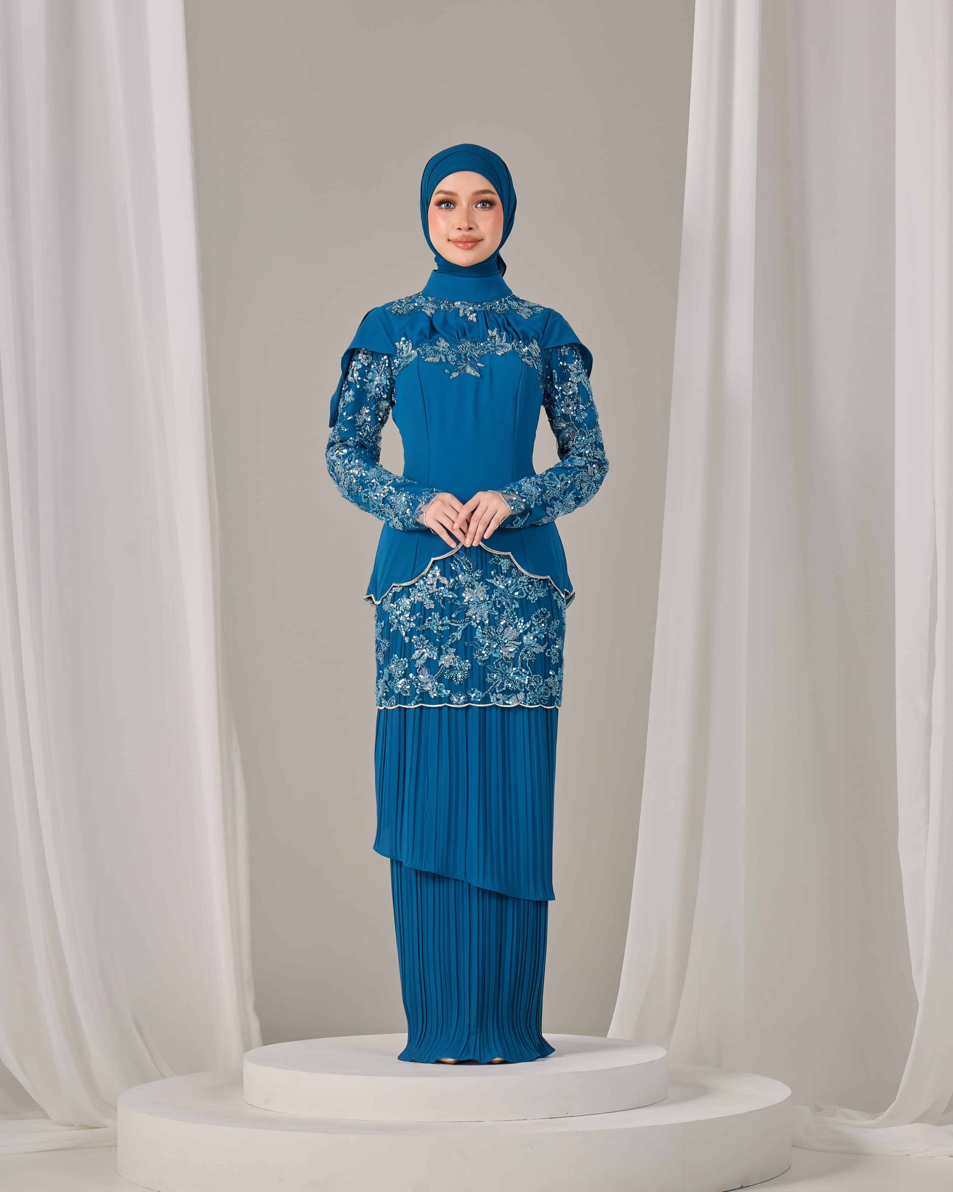 FRONT STYLE:Structured bodice with scalloped peplum lace hem