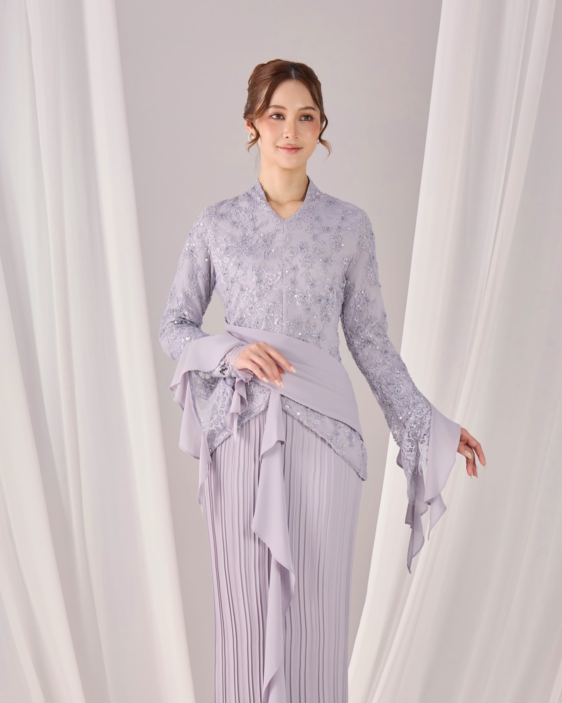 SLEEVE TYPE : Long fitted lace sleeves with soft flared chiffon cuffs