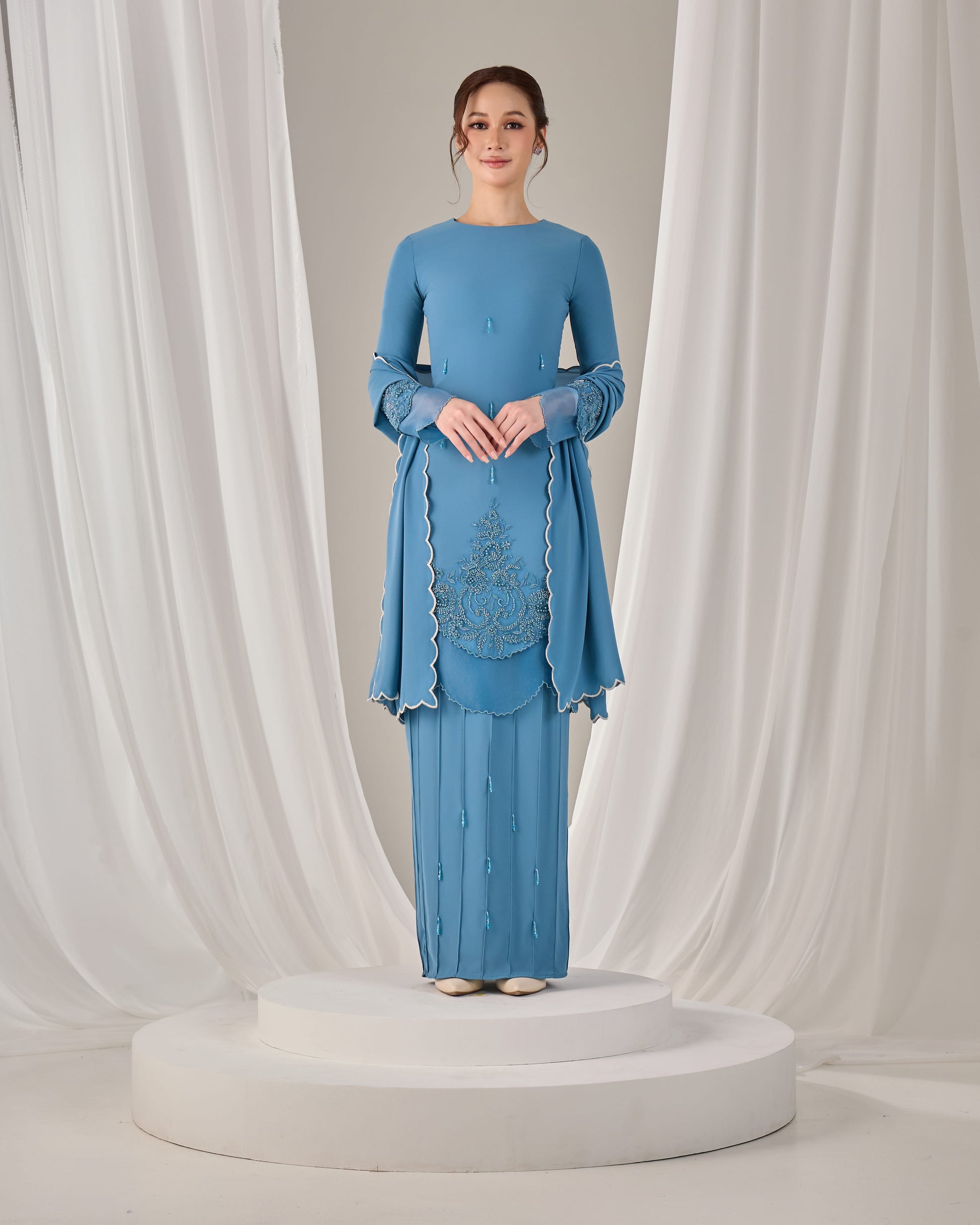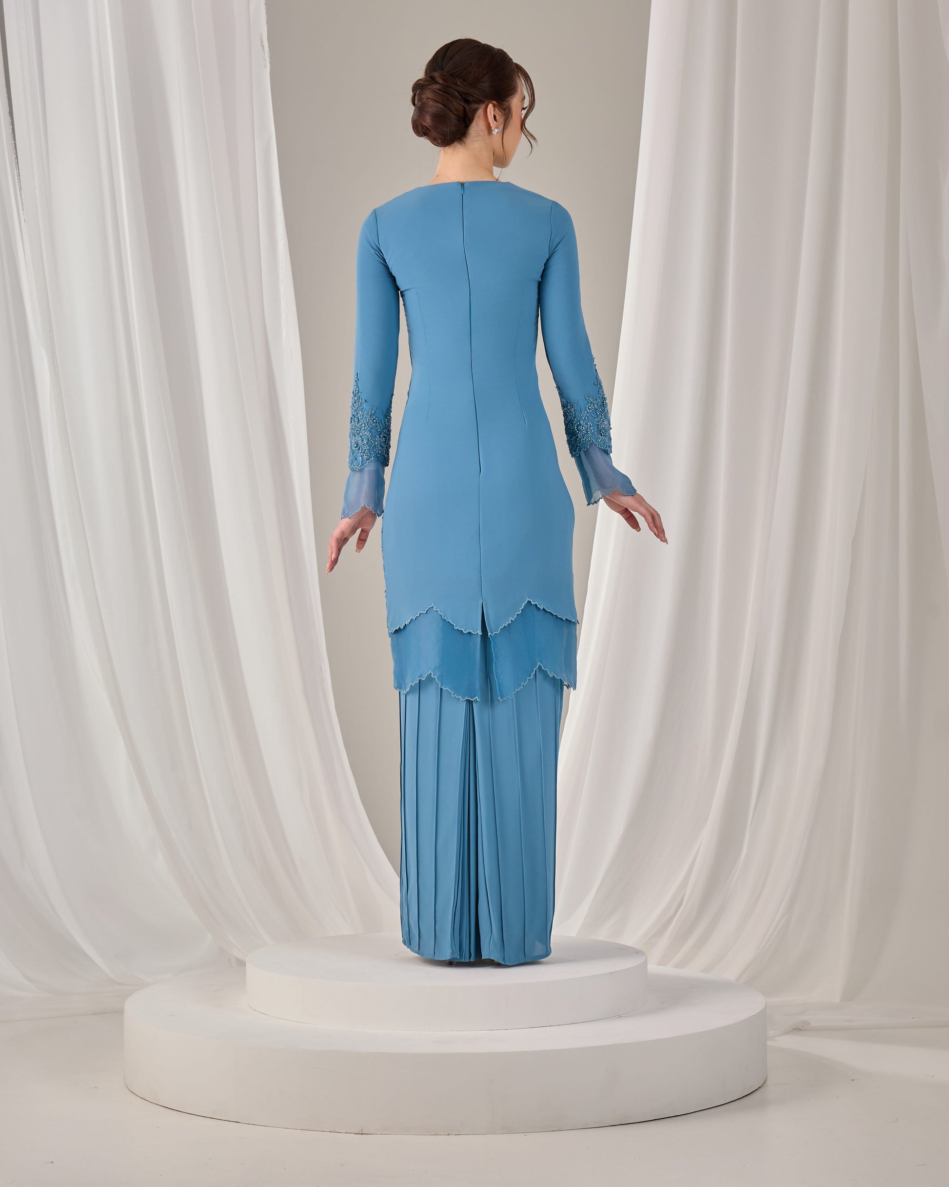 - Layered Long sleeve organdy scallop wtih lace beaded
