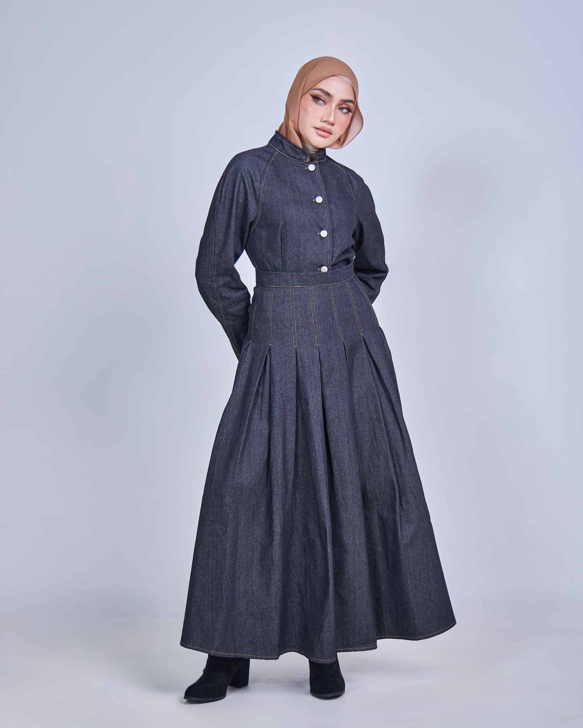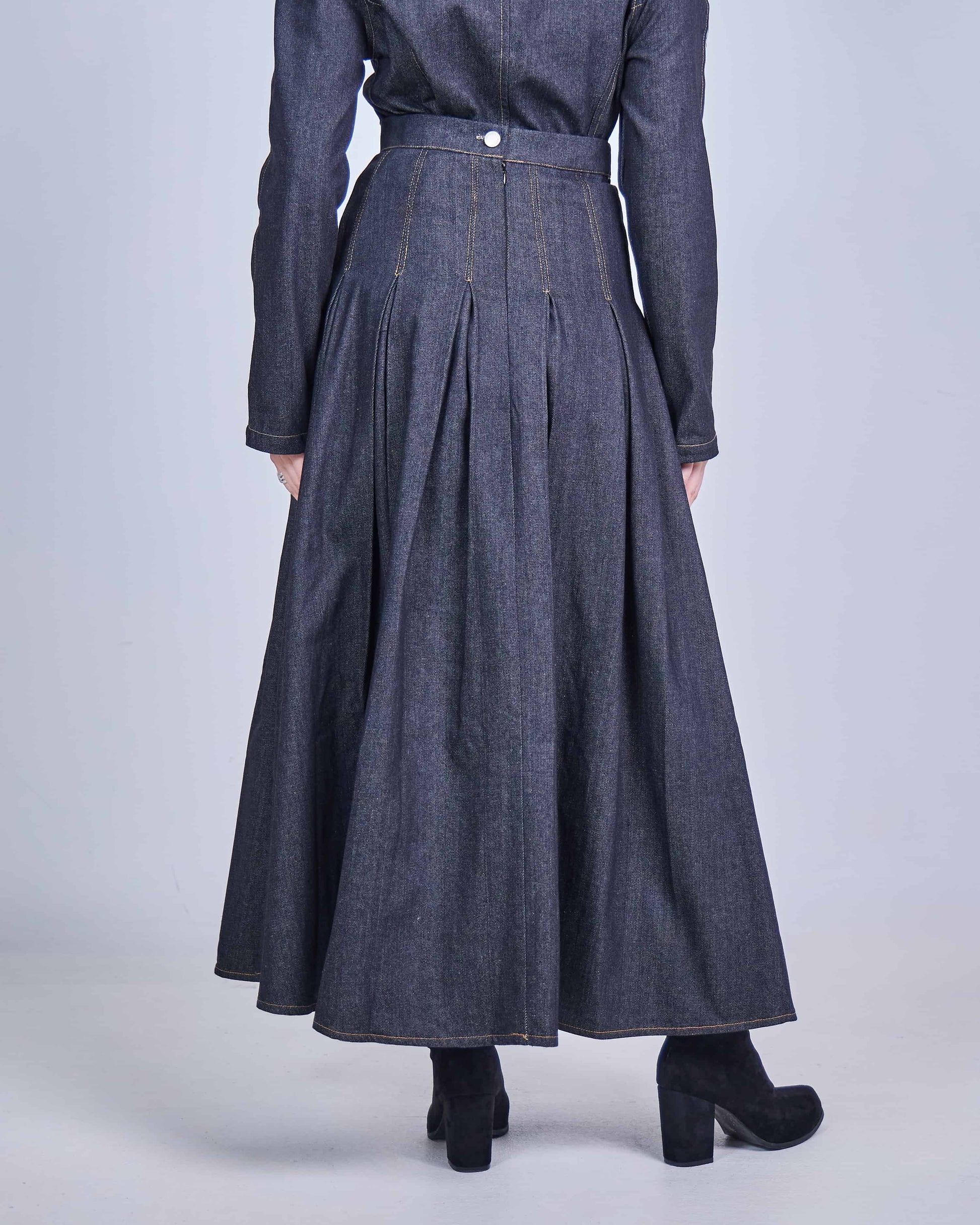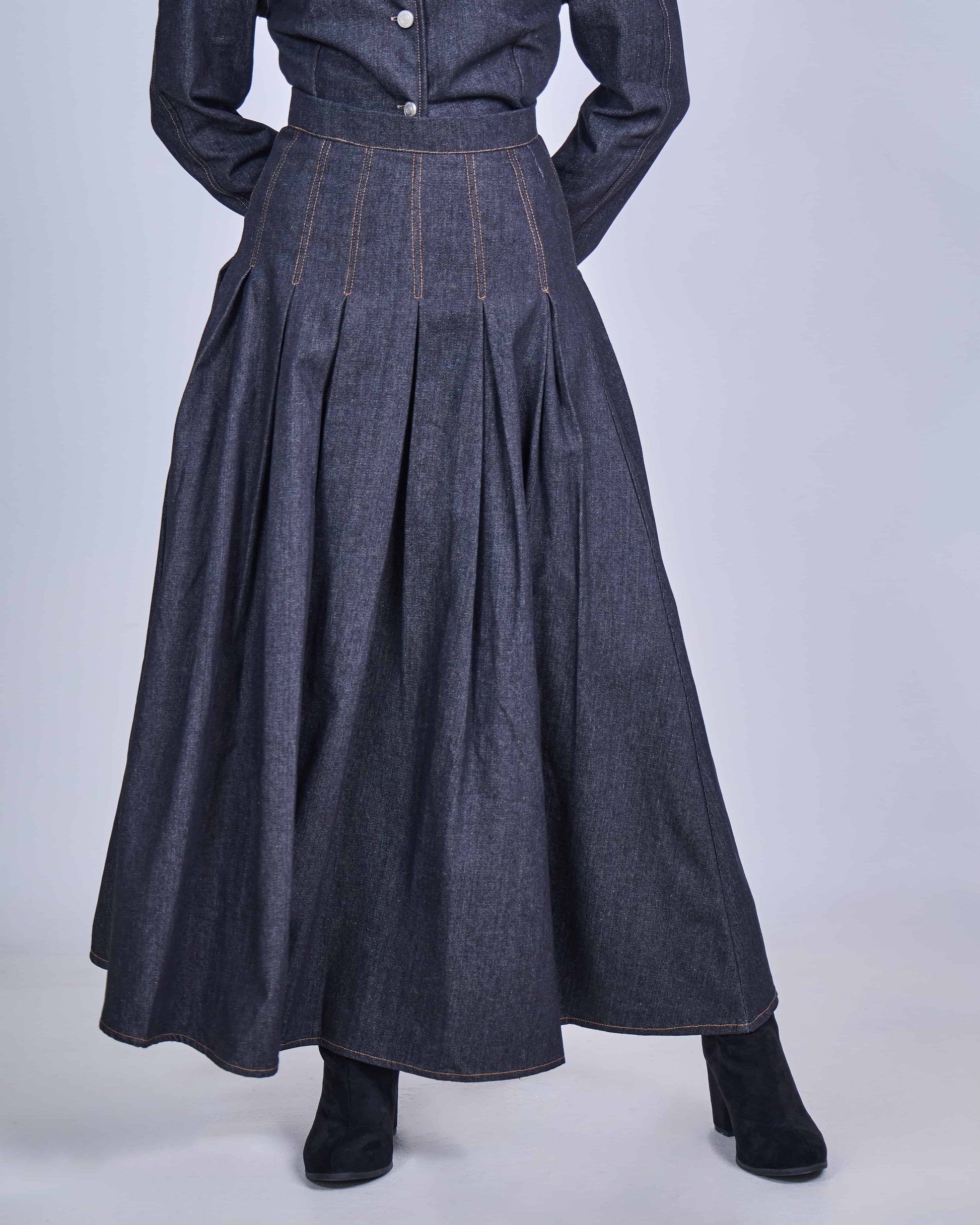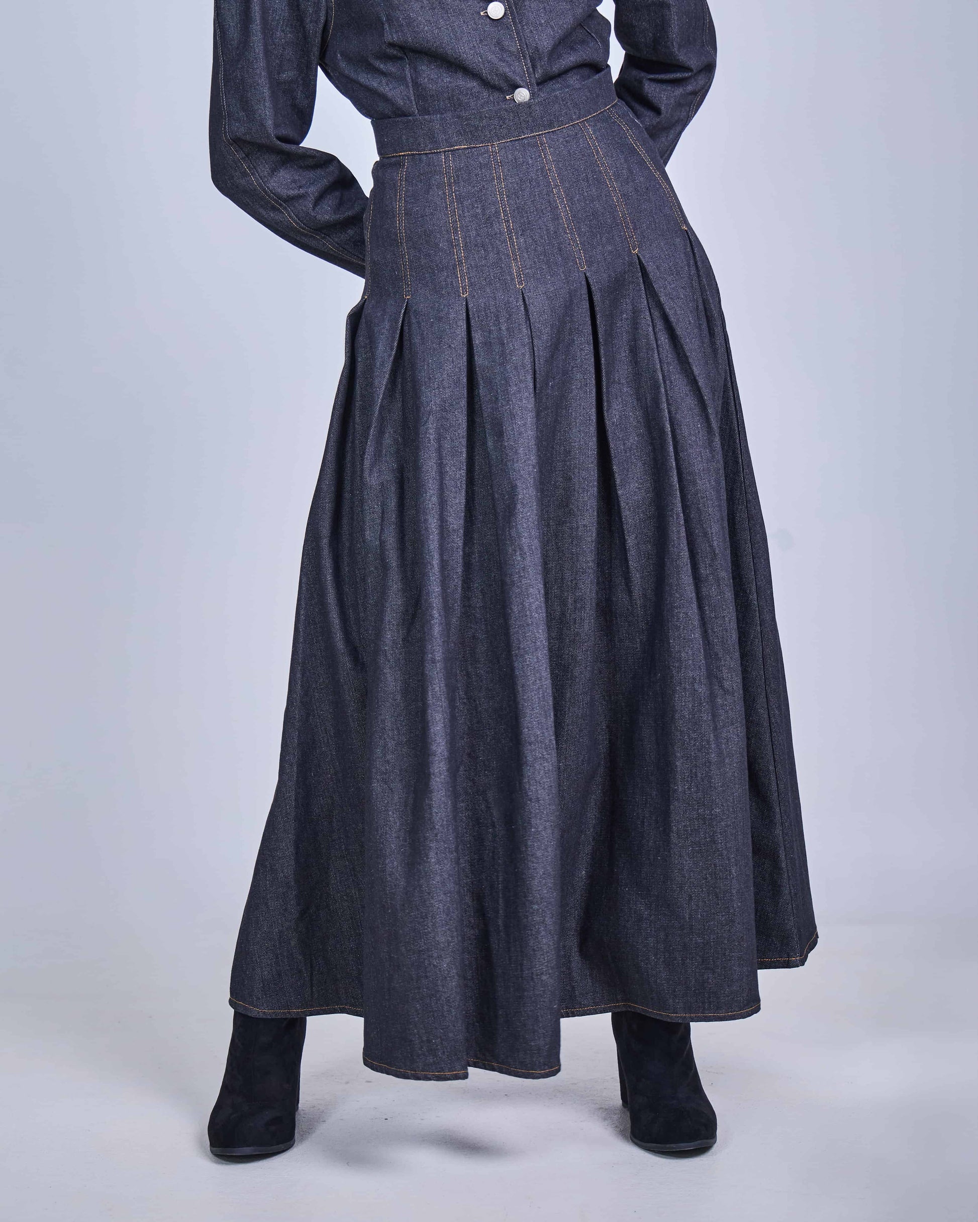 ELRA DENIM PLEATED SKIRT (BLACK)