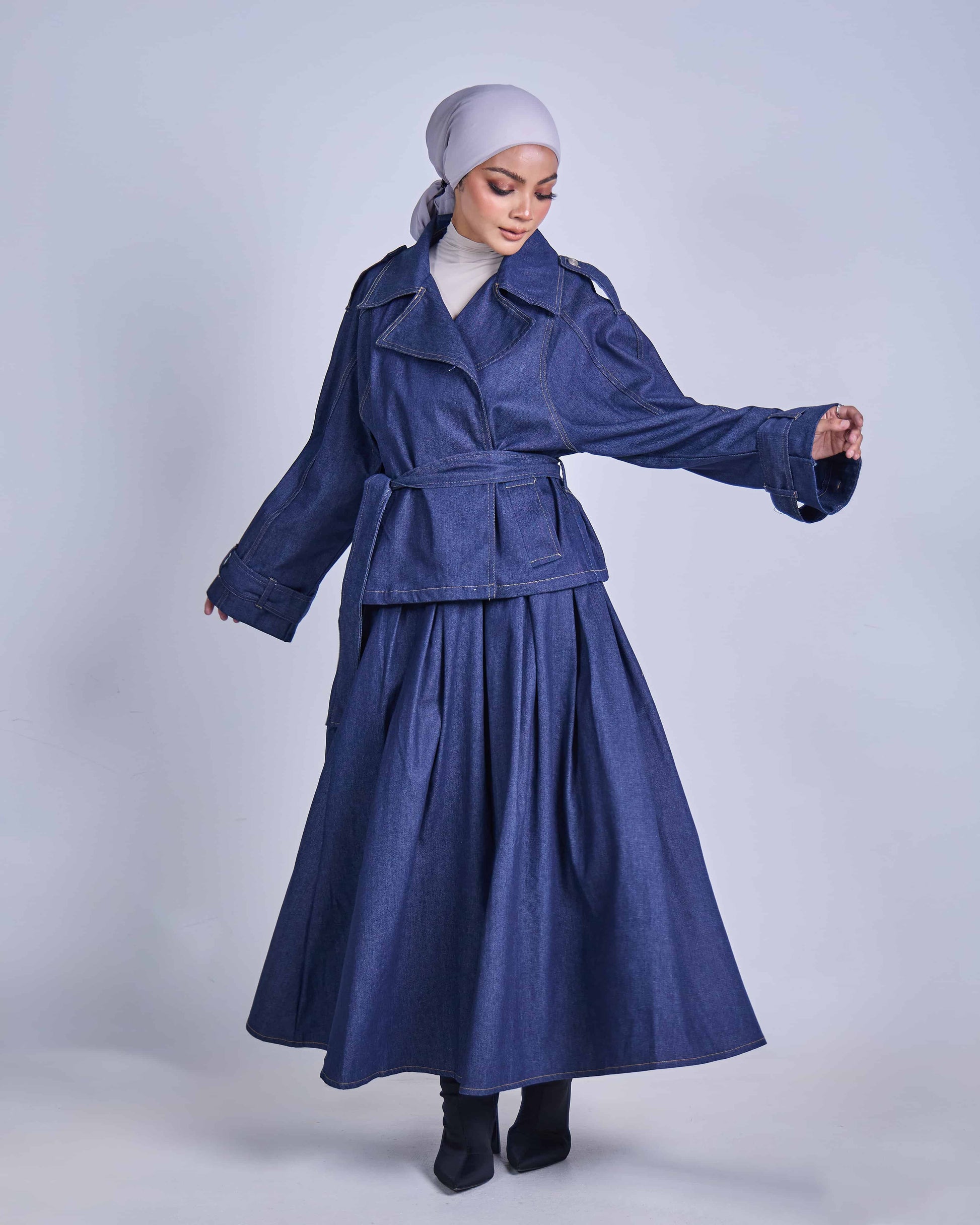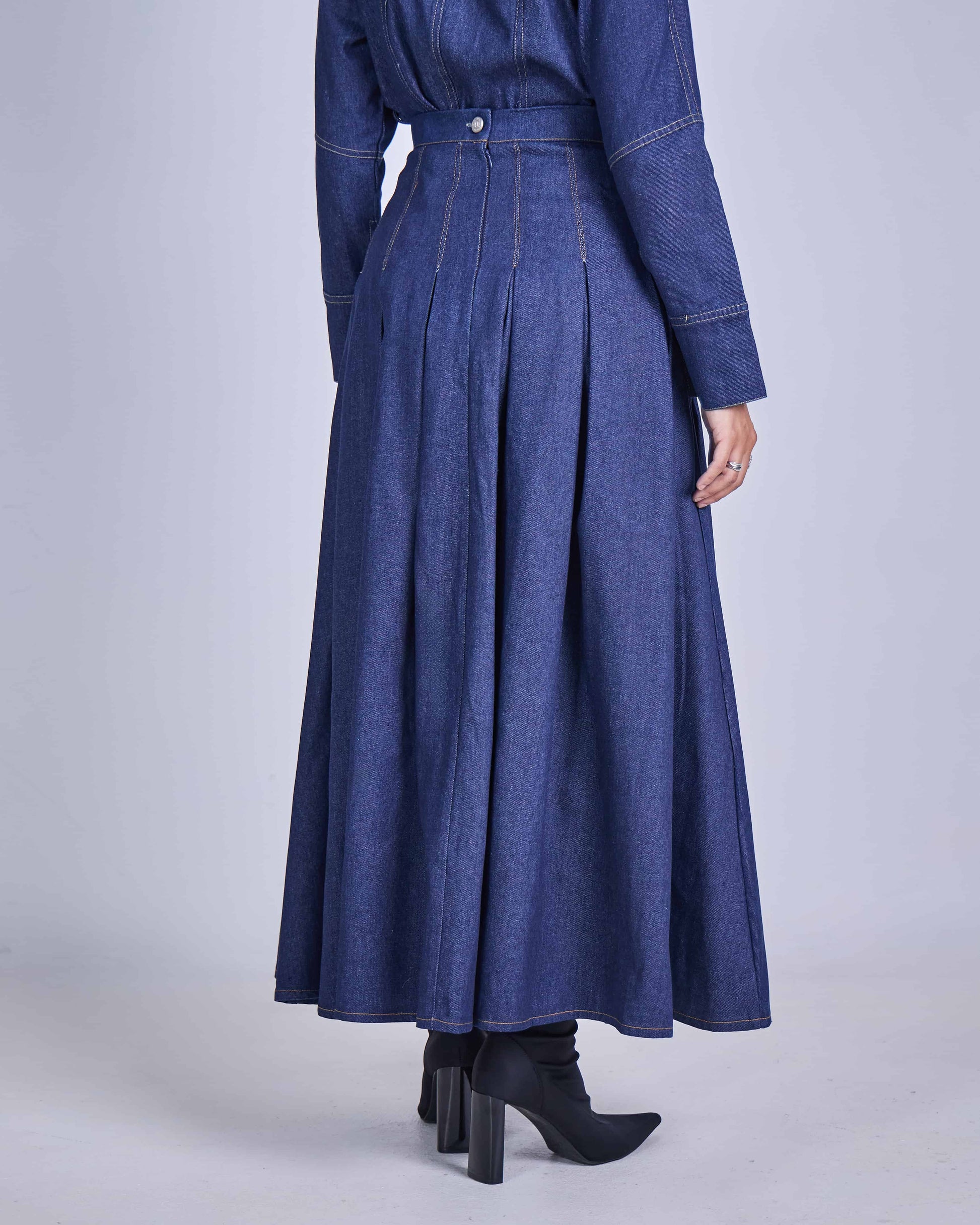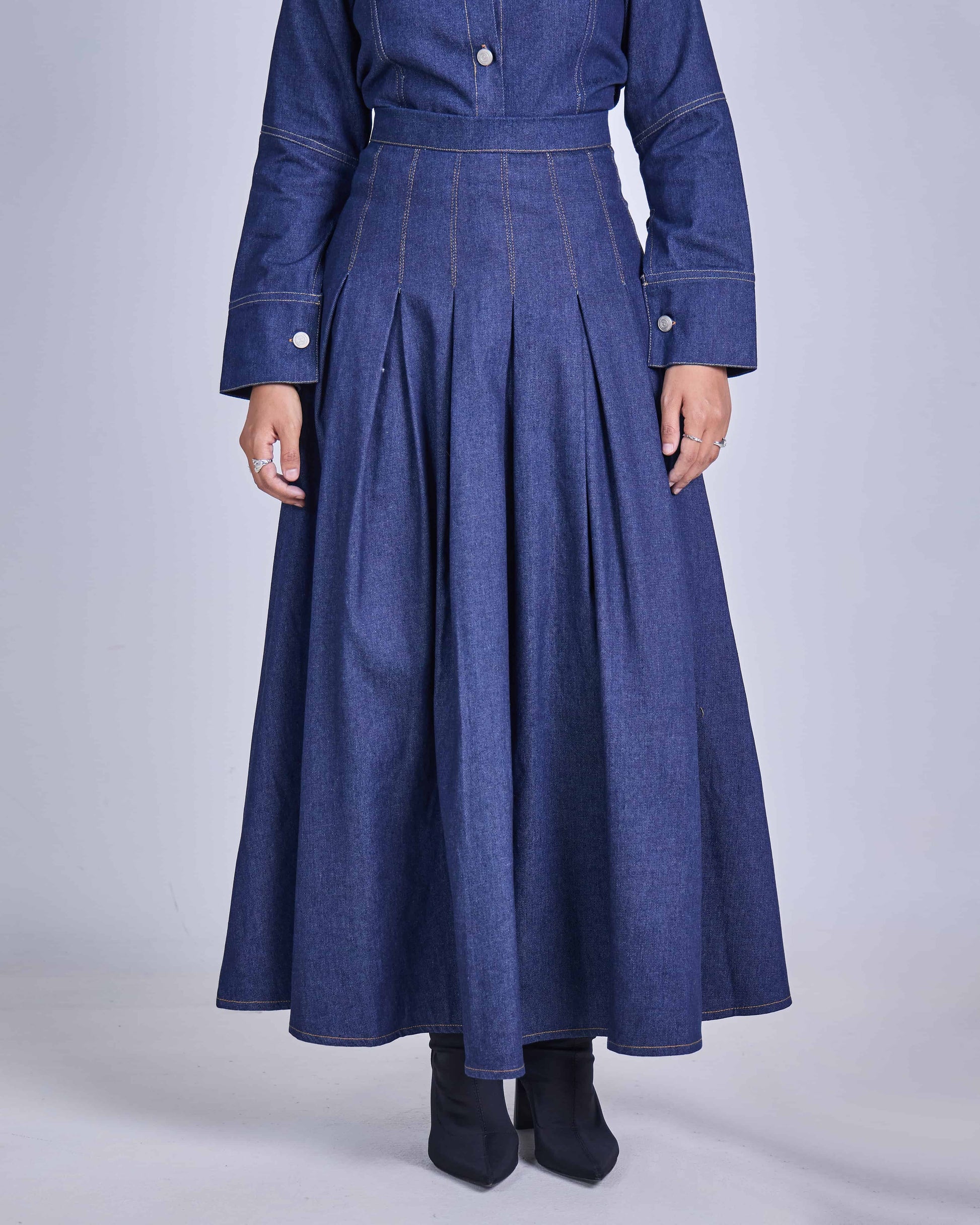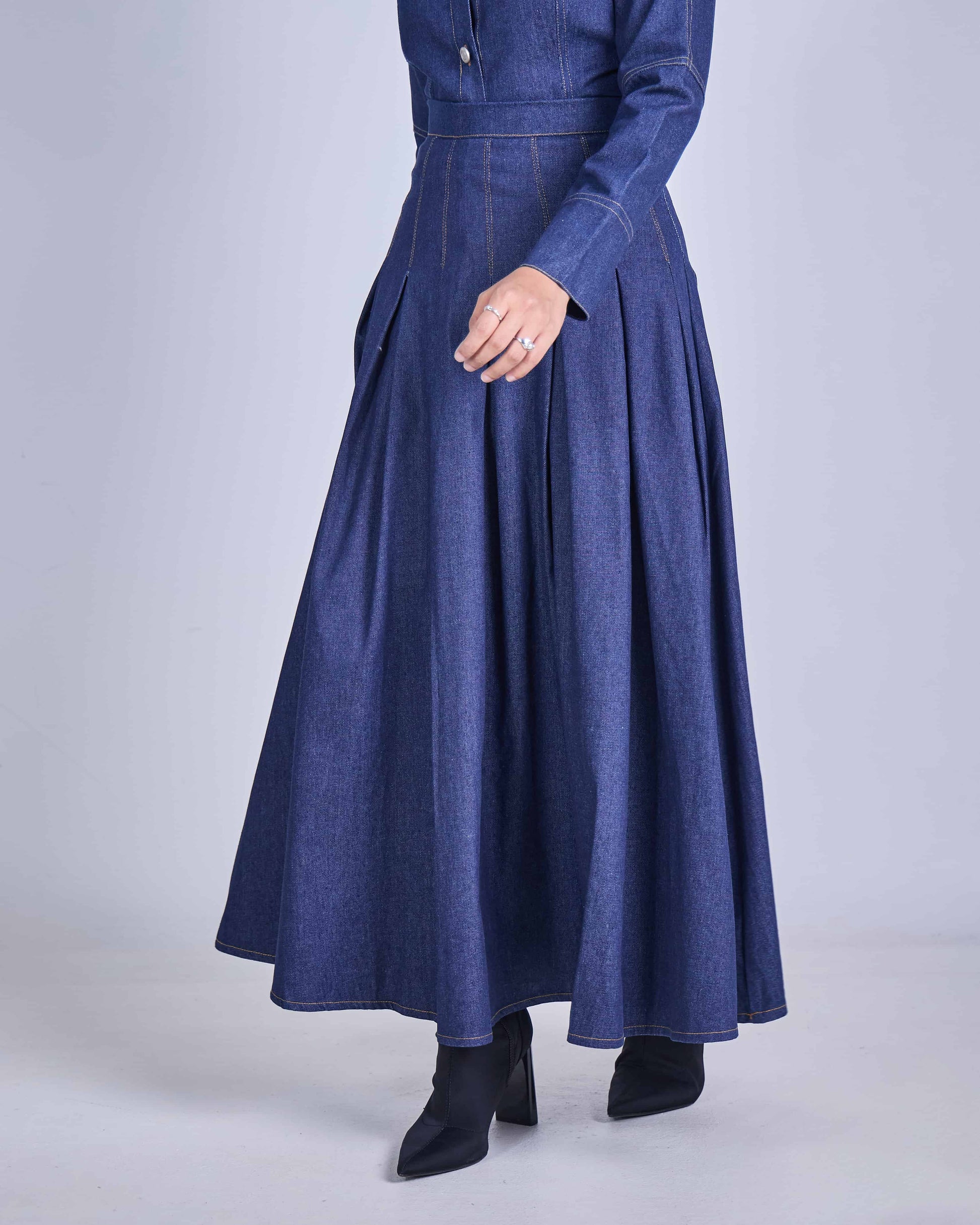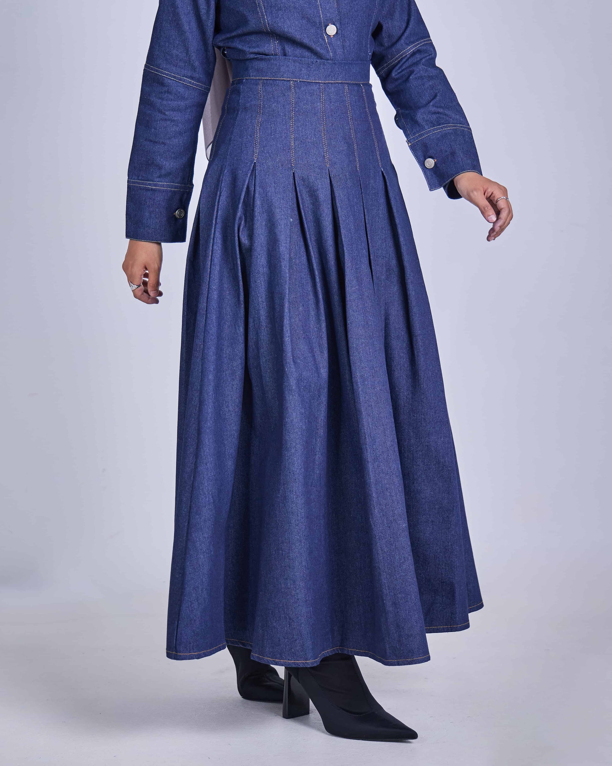 ELRA DENIM PLEATED SKIRT (DARK BLUE)