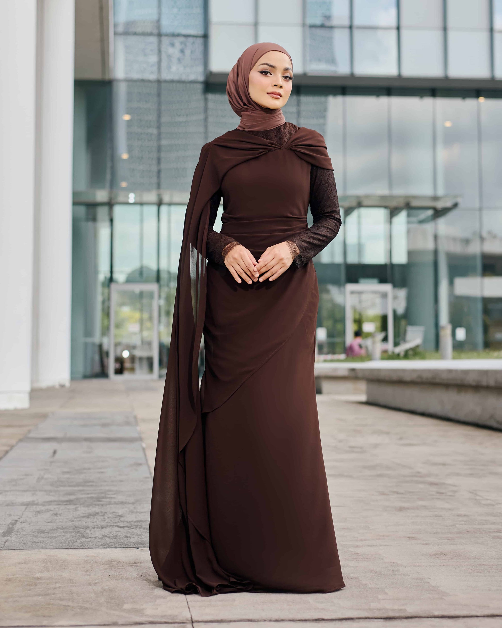 • Flowy floor length shape