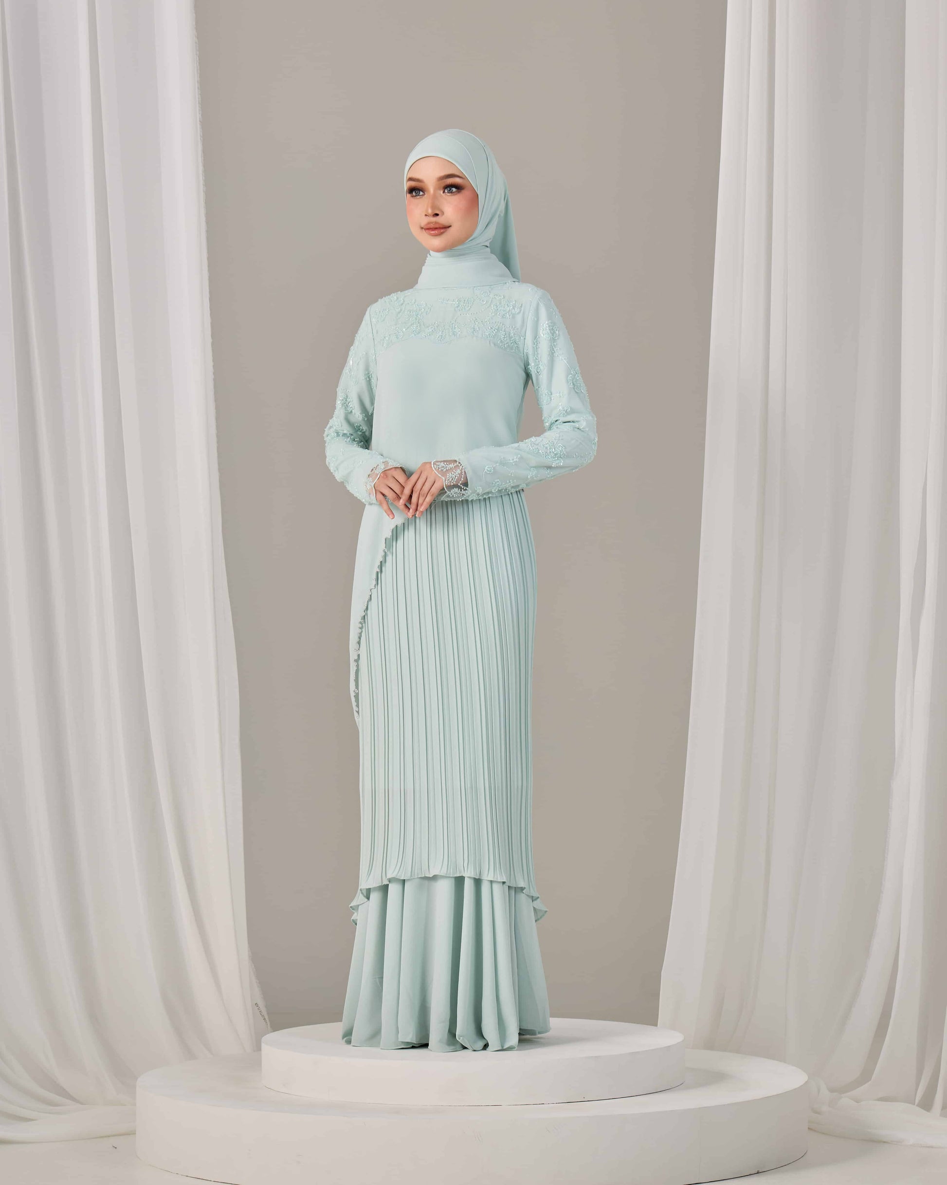 FRONT STYLE : Asymmetrical overlay with scalloped edging