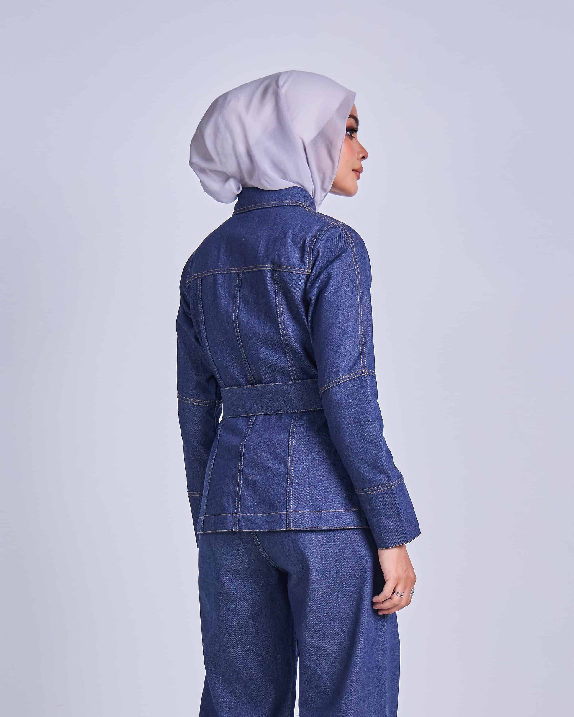 FEYRA DENIM BELTED JACKET (DARK BLUE)