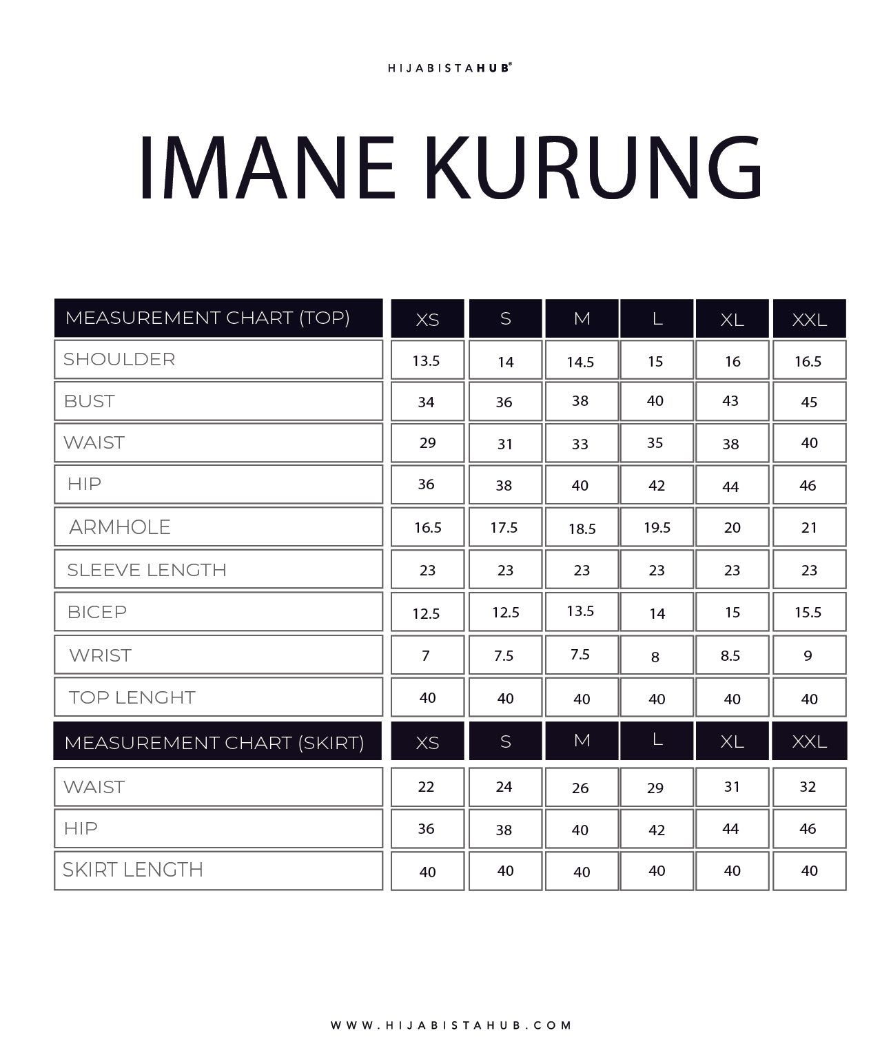 Please allow 0.5 - 1 inch difference due to manual measurement ( 1 INCH = 2.7 CM)