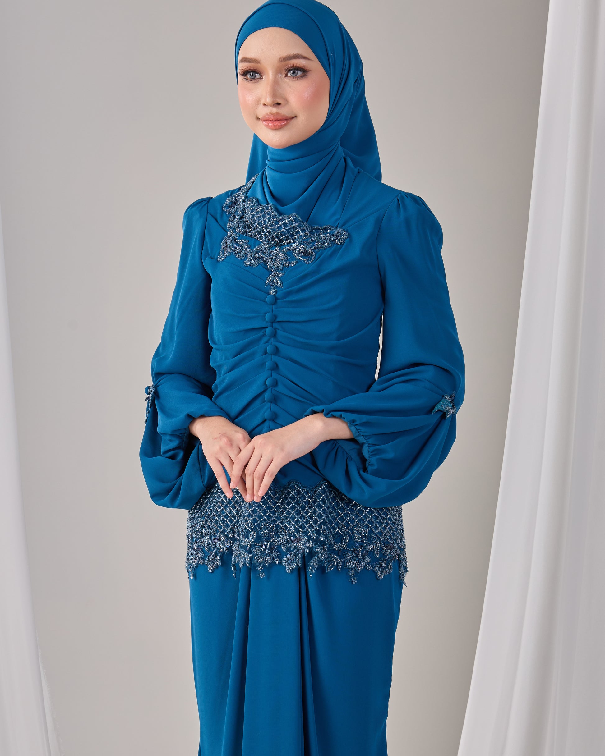 WAIST SKIRT: Defined waistline accentuated with intricate hand-beaded lace panel