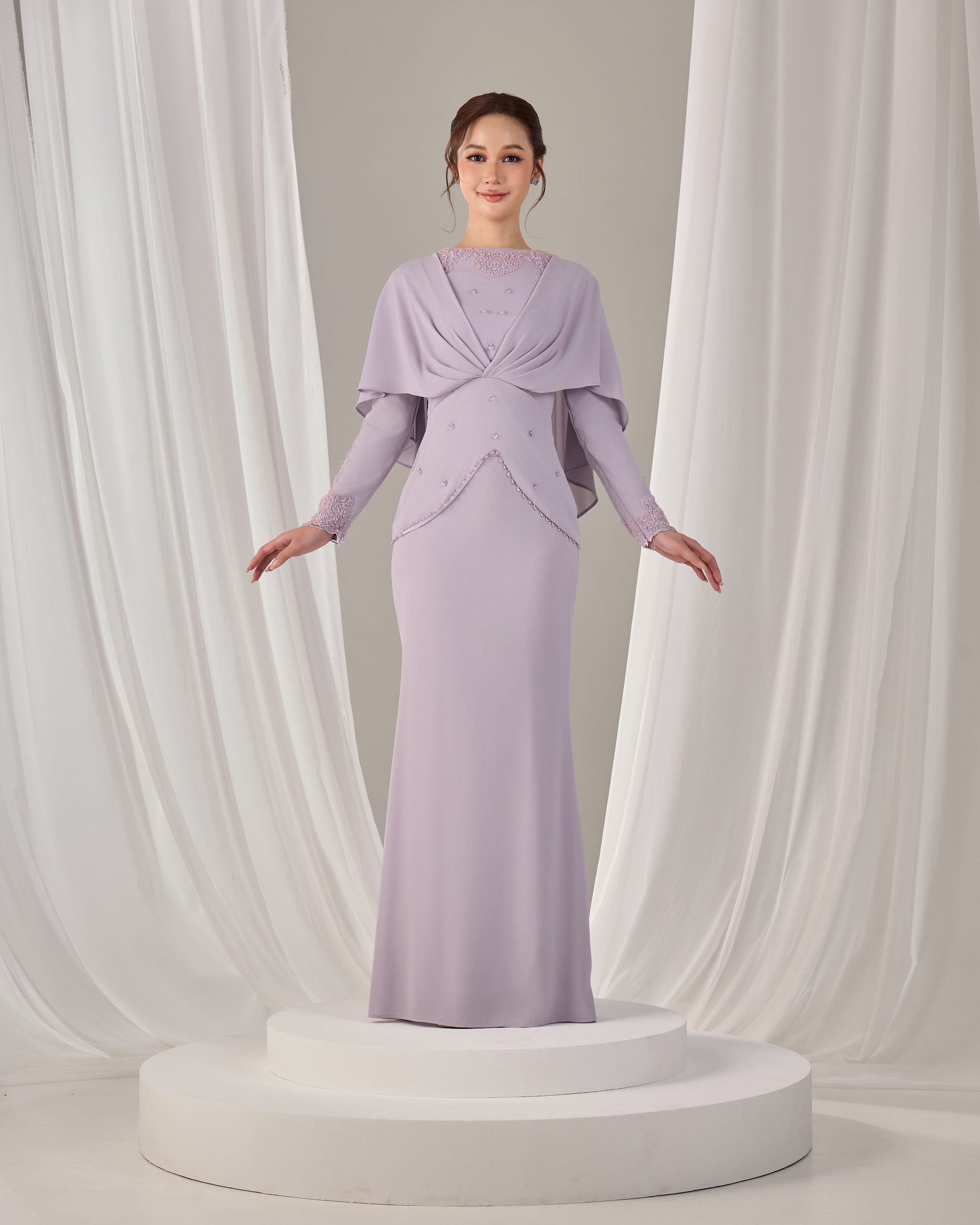 Silhoutte: Mini Kurung Drapping With Beaded Lace