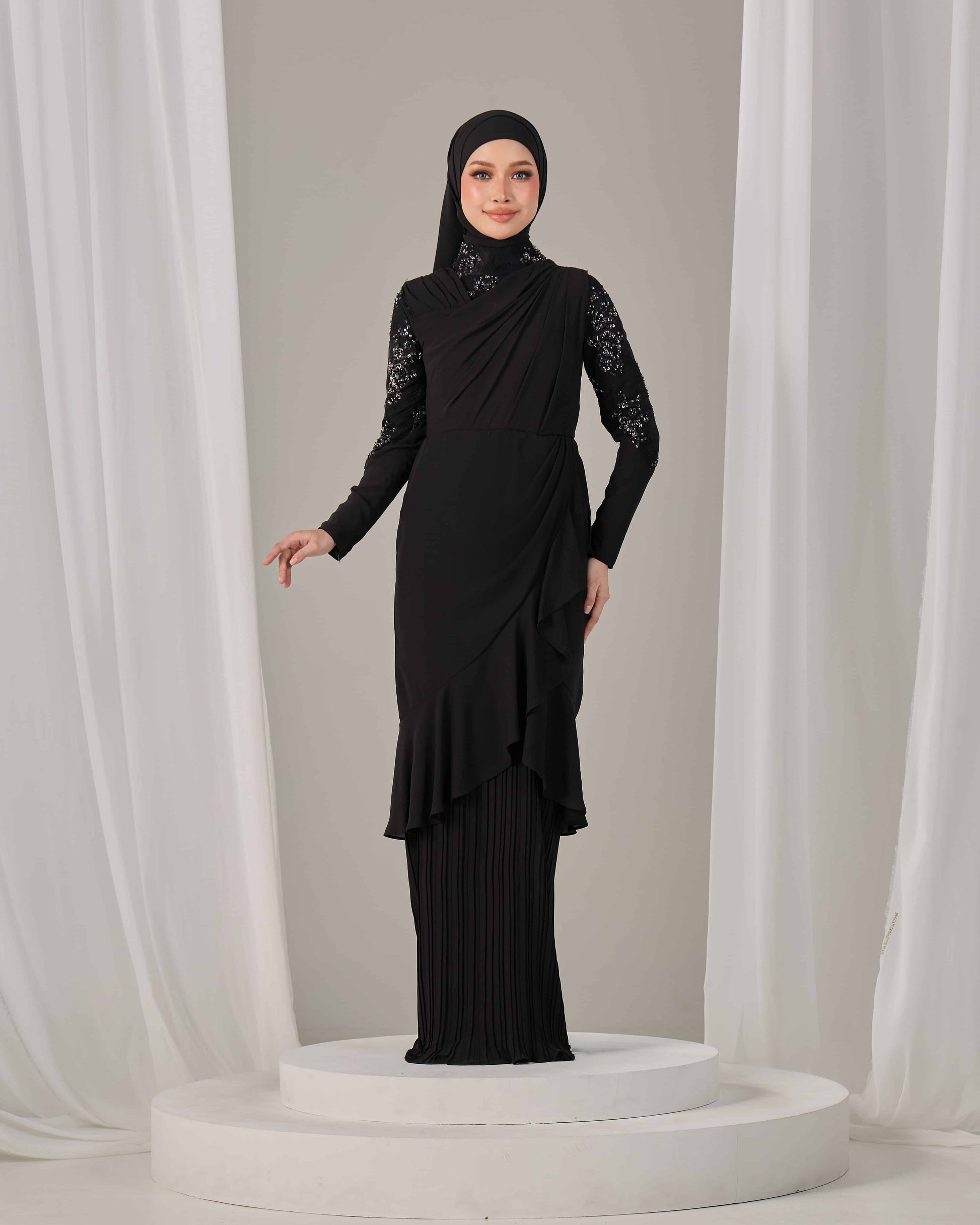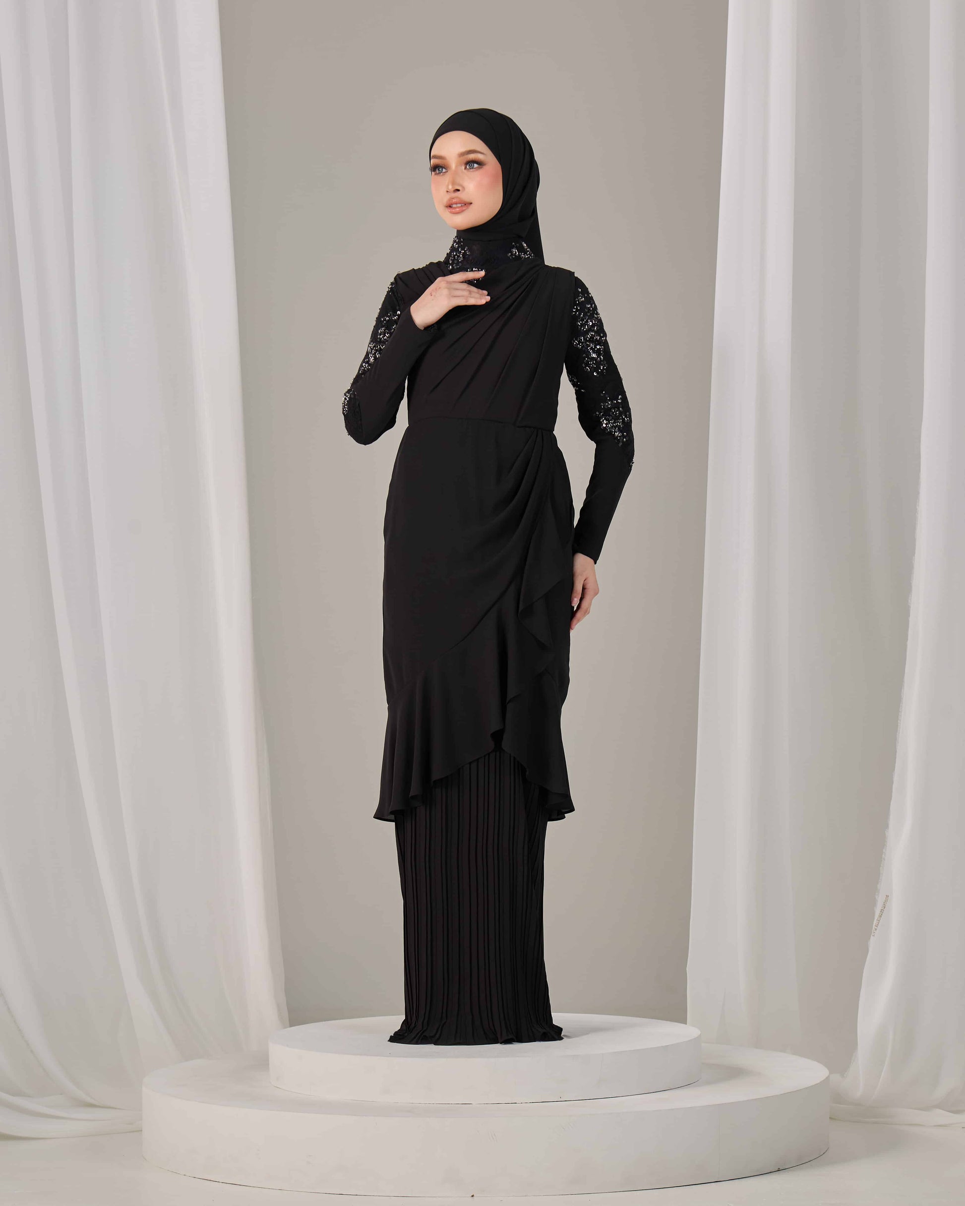 SLEEVE TYPE : Long fitted sleeves with lace applique