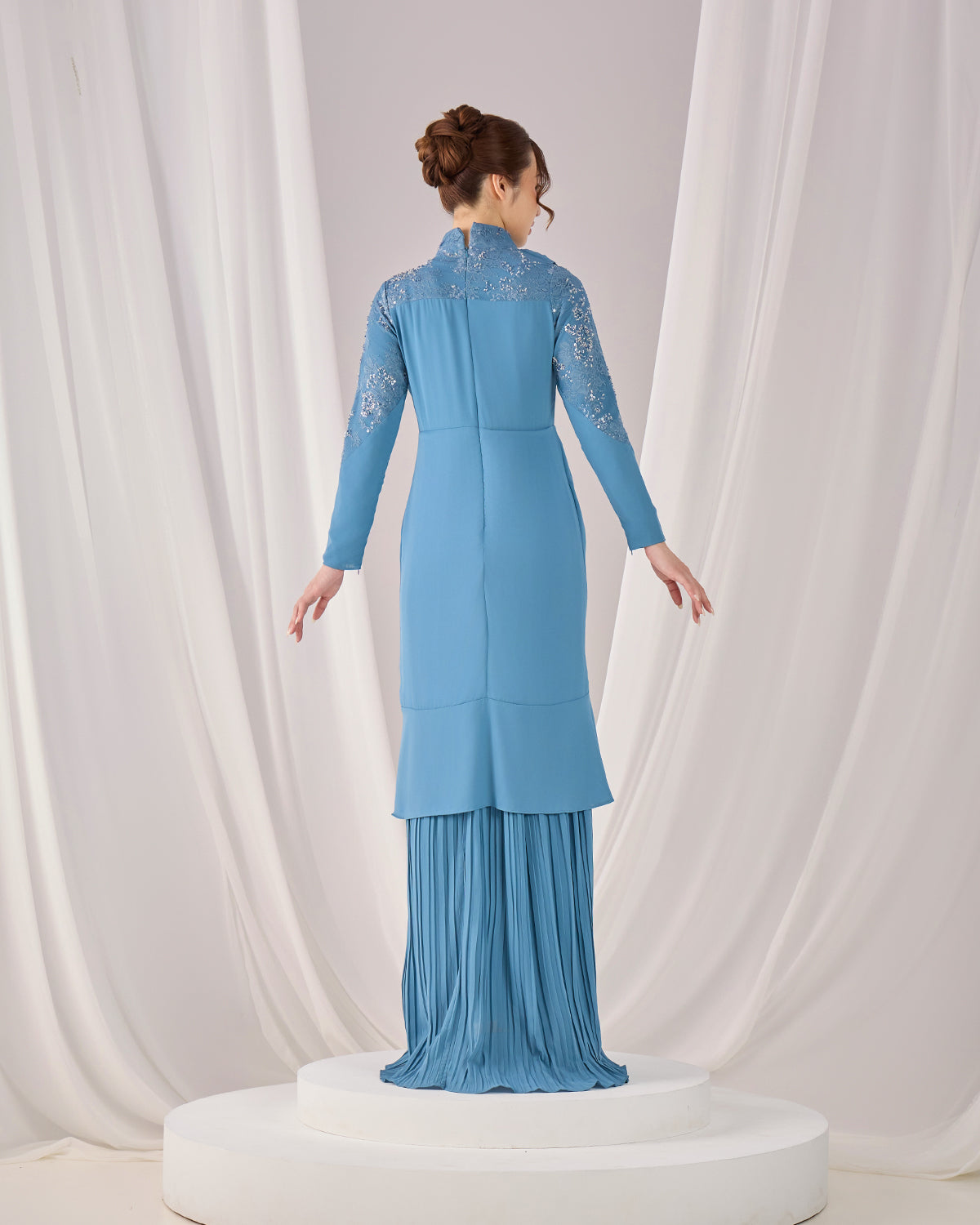 NECKLINE : High neck with lace detailing