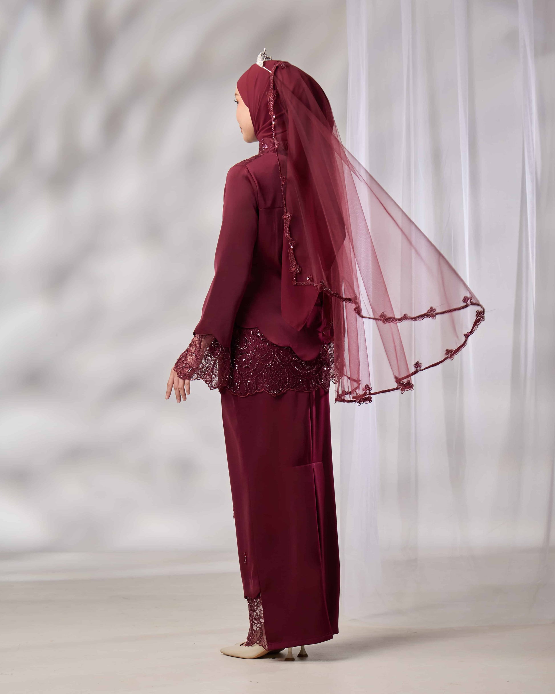 - Wide long sleeve with layered scallop cuff and french lace beaded on wrist