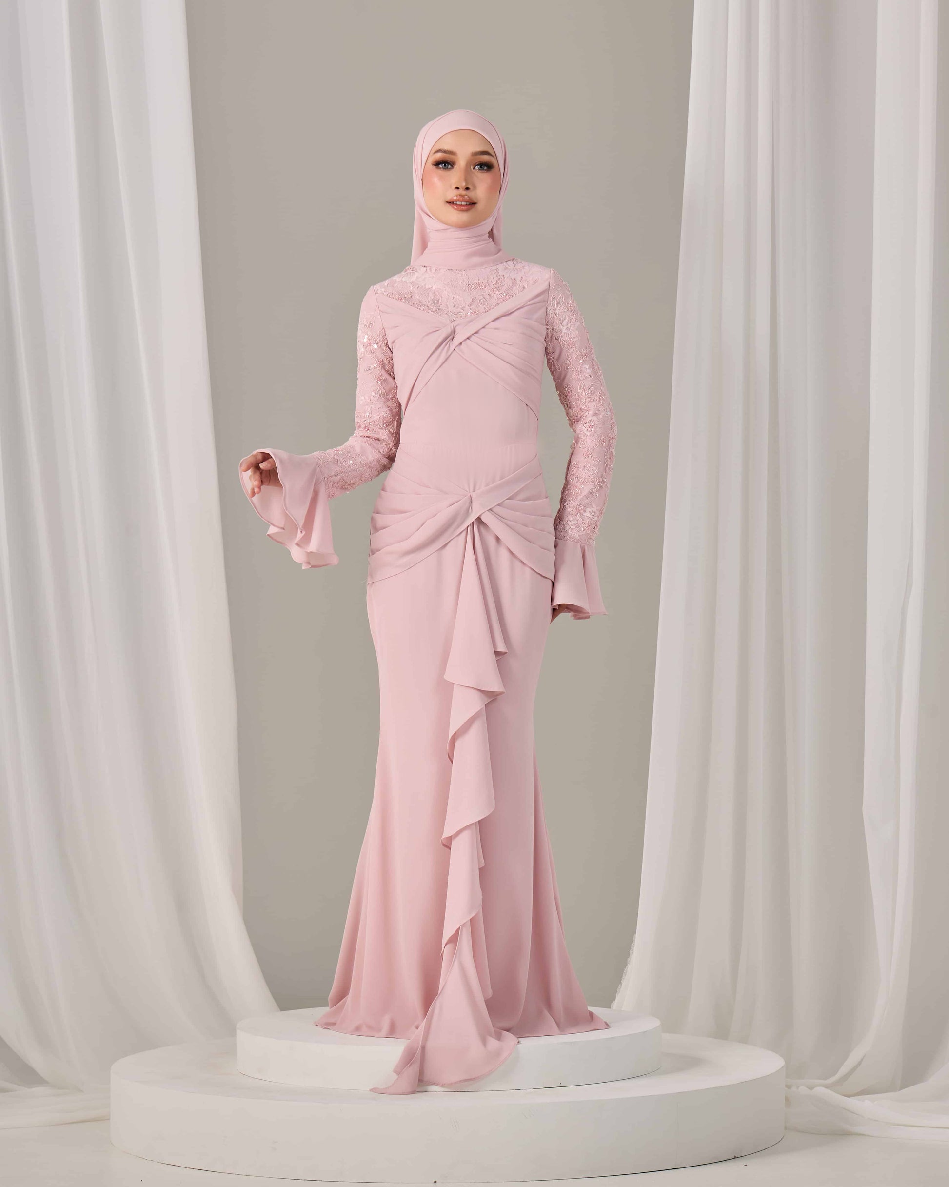 SLEEVE TYPE : Long lace sleeves with flared chiffon cuffs